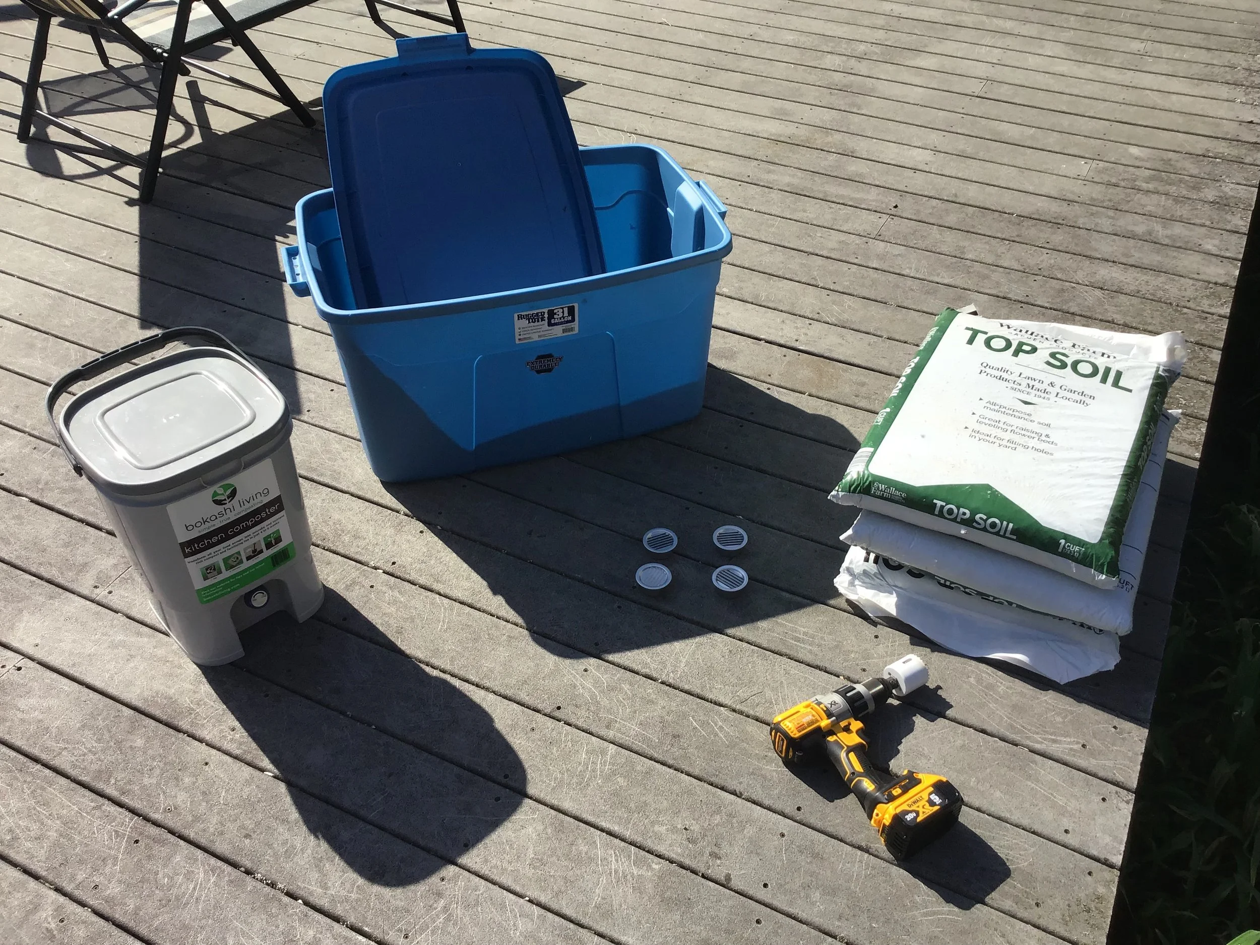 A “soil factory!” 31-gallon plastic tote with some soffit vents to allow for airflow.